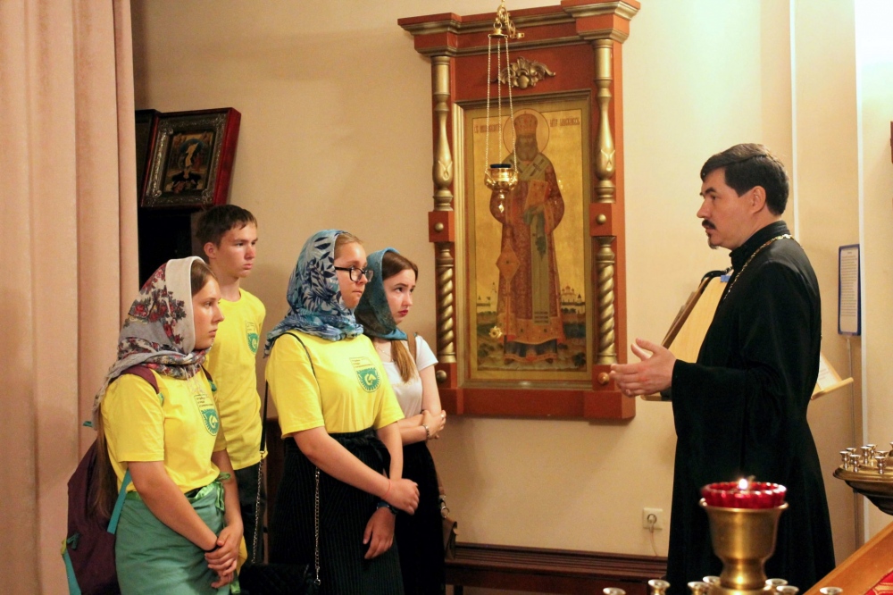 Священник встретил ребят в верхнем храме, провел для них экскурсию. Батюшка рассказал об истории собора, познакомил ребят с чудотворными иконами, объяснил «строение» иконостаса и многое другое.