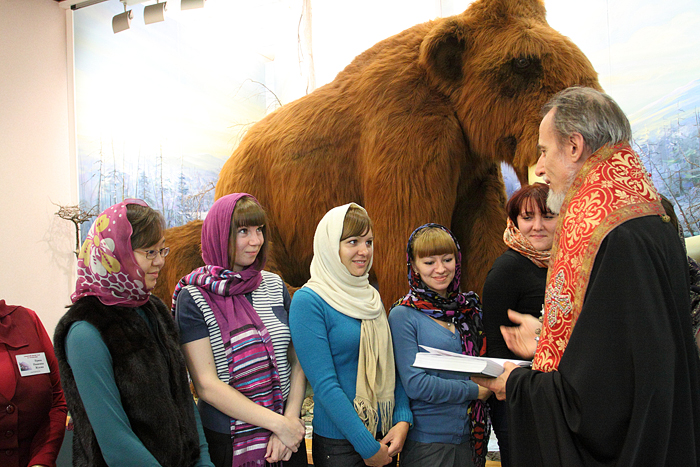 «Вы постоянно соприкасаетесь с огромным количеством людей, которые приходят в музей не только за знаниями, сколько для того чтобы стать духовно богаче», - обратился к сотрудникам музея владыка. Он объяснил, что для того, чтобы духовно обогатить других людей, нужно самому стать лучше. При освящении священнослужитель призывает благодать Божию и на здание и на трудящихся в нем: «постарайтесь бережно сохранить ее в сердце своем, как раковина хранит жемчужину».
