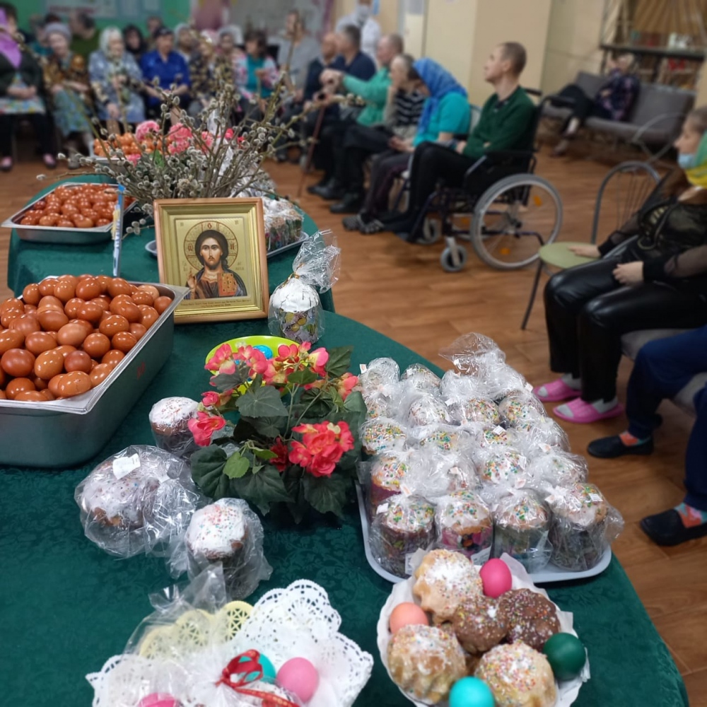 Настоятель храма в честь иконы Божией Матери «Скоропослушница» поселка Красная речка иерей Олег Кожухов встретился с пациентами дома-интерната для престарелых и инвалидов №2. Батюшка поздравил всех с праздником Пасхи Господней и освятил куличи и расписанные яйца.