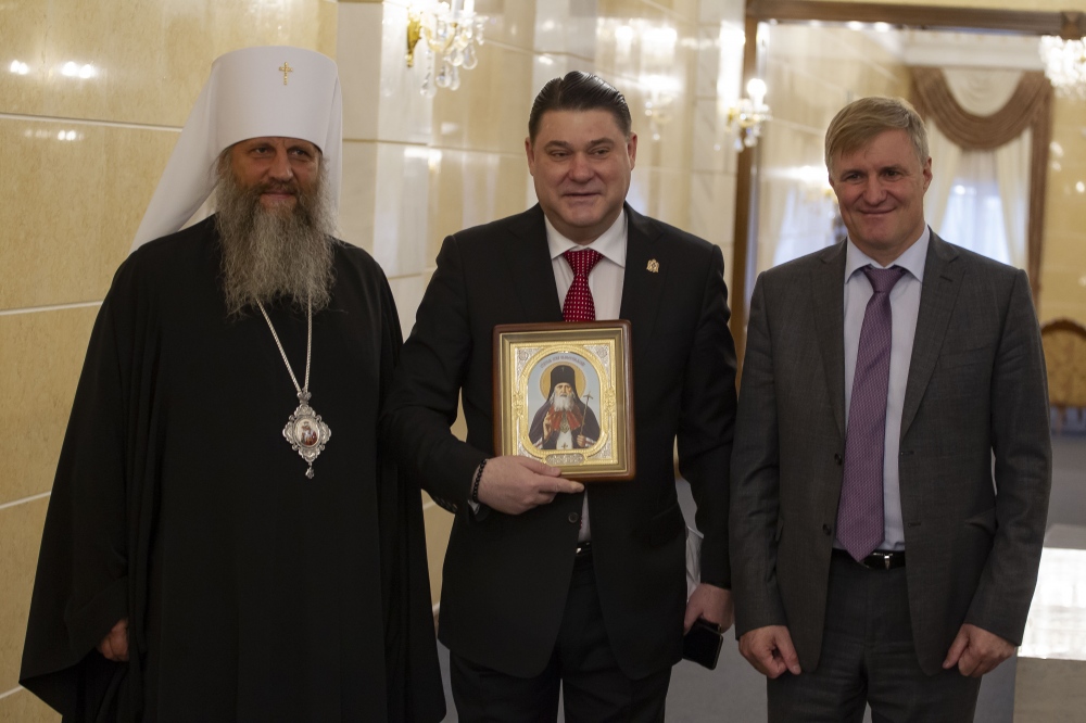 В завершение поздравления митрополит Артемий подарил министру здравоохранения Александру Витько икону святителя Луки Войно-Ясенецкого.