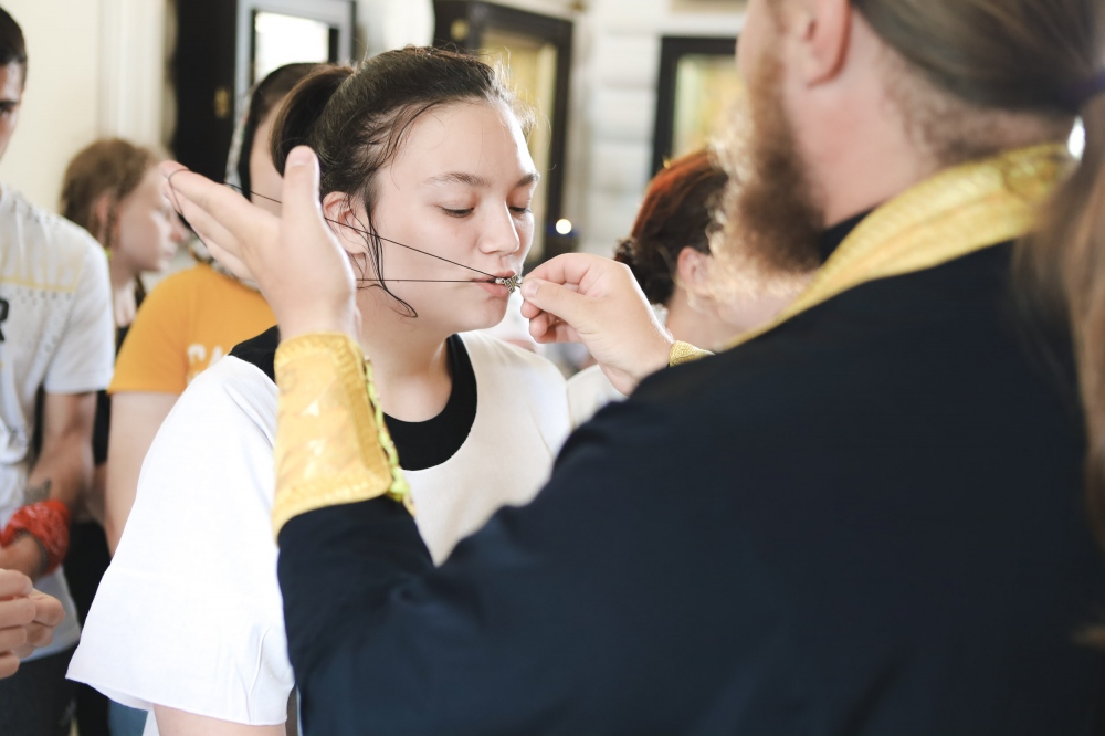 - На этот форум приехало много учеников из школ Хабаровского края, где мы проводили с января беседы о любви и влюбленности, о любви к ближнему, о вреде сквернословия, - рассказывает иерей Андрей Долгополов. – У нас были некрещённые ребята – пятнадцать человек, которых мы покрестили прямо на форуме. Сегодня они первый раз причащались. Я смотрел на них после причастия и видел уже родного человека, которого ты давно знаешь, хотя на самом деле видел его четыре дня в лагере и до этого - на беседе в школе. Это такое большое укрепление и для меня и наших отцов, работающих с молодёжью, и для наших активистов, это такое христианство на практике. Мы видим, как Господь среди нас укрепляет, помогает и приводит к Любви, и так здорово быть соучастником.