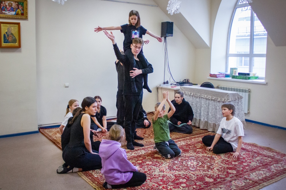 После Рождественских каникул в воскресной школе Елизаветинского храма начала работу театральная мастерская. Театральным искусством с детьми занимаются студенты 3 курса Хабаровского государственного института культуры Долгушин Егор и Сорокина Ксения.