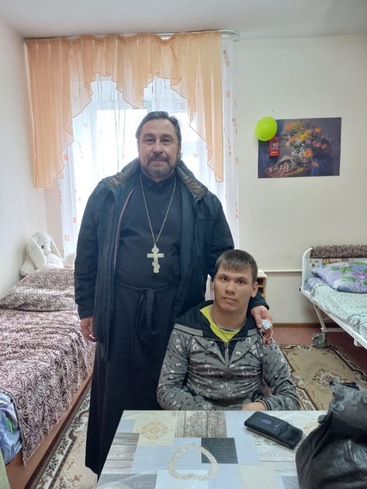 Отец Алексей Скорик навестил в психоневрологическом интернате в селе Ильинка православного парня с инвалидностью Андрея Еремеева. Андрей воцерковился в детстве, в то время он проживал в детском интернате посёлка Березовка. Его окормляли прихожане и молодёжная приходская группа храма святой преподобномученицы Елизаветы, которую в то время возглавлял отец Дионисий Ногтев. Когда Андрей стал взрослым, то верующие не забыли про него и продолжают общаться с ним.