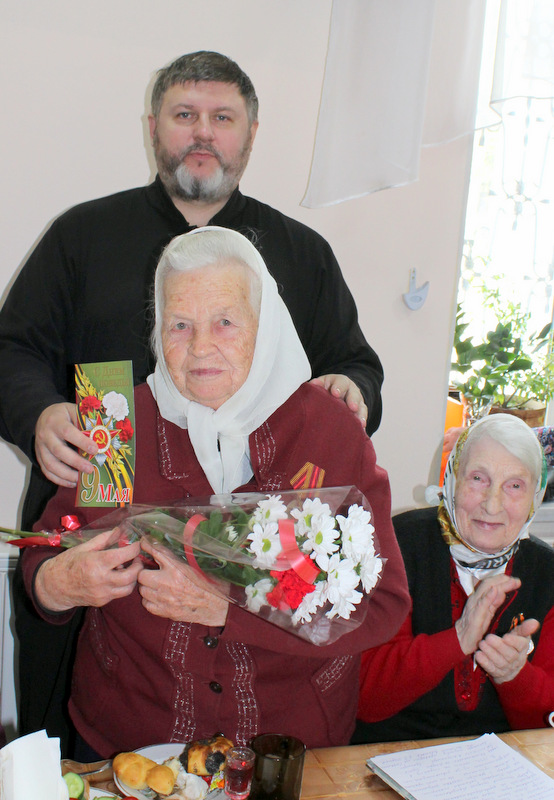 Отец Олег для каждого нашёл тёплые слова и вручил ветеранам цветы и подарки, подготовленные социальной группой и воскресной школой.