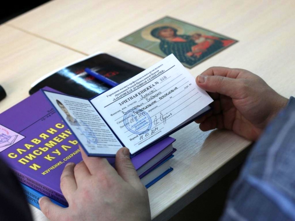 17 октября в рамках осенней сессии состоялся первый учебный день. Начался он со встречи с первым проректором Хабаровской духовной семинарии епископом Бикинским Ефремом. Владыка обратился к студентам с поздравительным и напутственным словами, после чего вручил им зачетные книжки и памятные подарки: икону Божией Матери «Хабаровская», а также две книги, содержащие в себе лучшие доклады краевых Кирилло-Мефодиевских чтений, которые будут напоминать студентам об этом дне и о том решительном шаге, который они решили сделать в своей жизни.