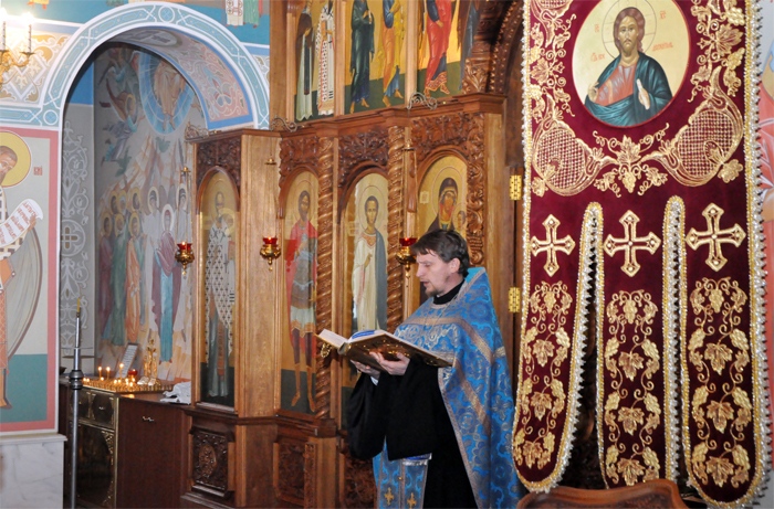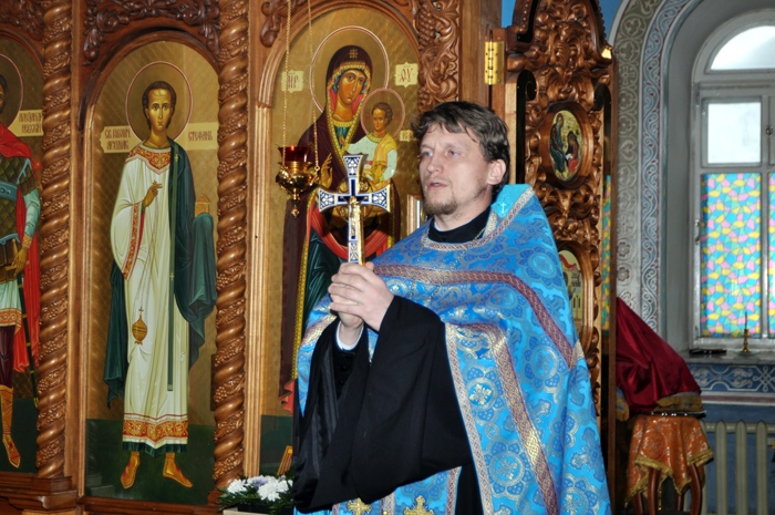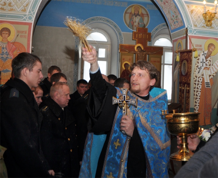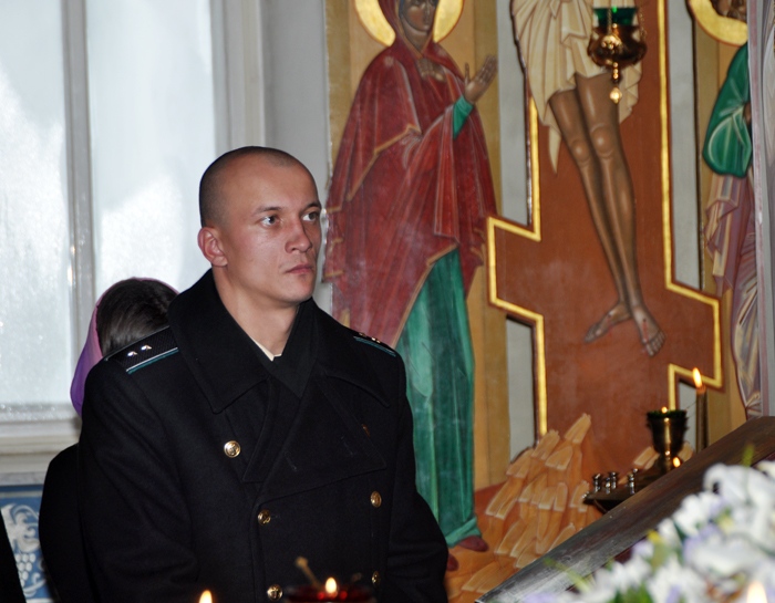 В храме святого благоверного князя Даниила Московского прошел молебен с участием сотрудников Пограничного управления ФСБ РФ по Хабаровскому краю и ЕАО. Праздник Введения во храм Пресвятой Богородицы. 4 декабря 2012 г.