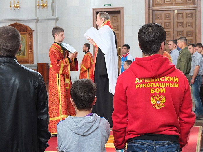 Молебен перед открытием турнира ДФО по армейскому рукопашному бою. Спасо-Преображенский кафедральный собор. 1 июня 2013 г.