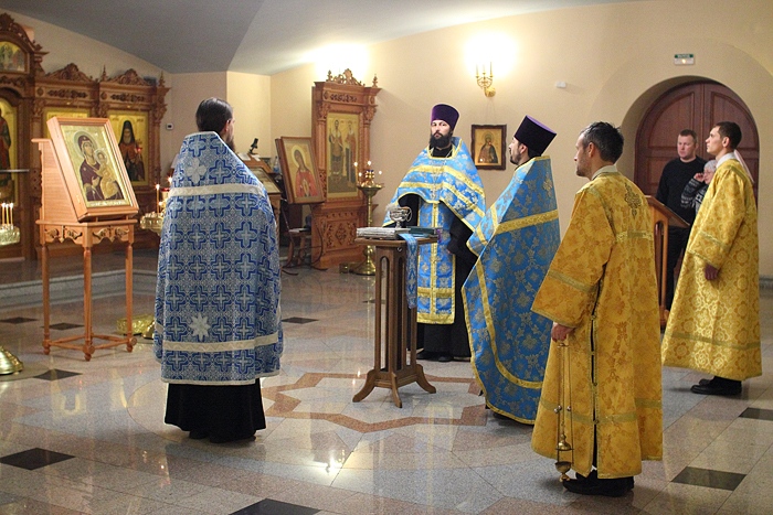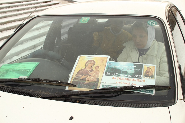 Молебен перед началом автомобильного крестного хода со Смоленской иконой Божией Матери "Одигитрия". 16 ноября 2013 г.