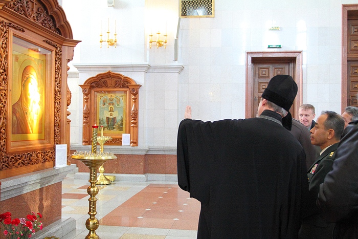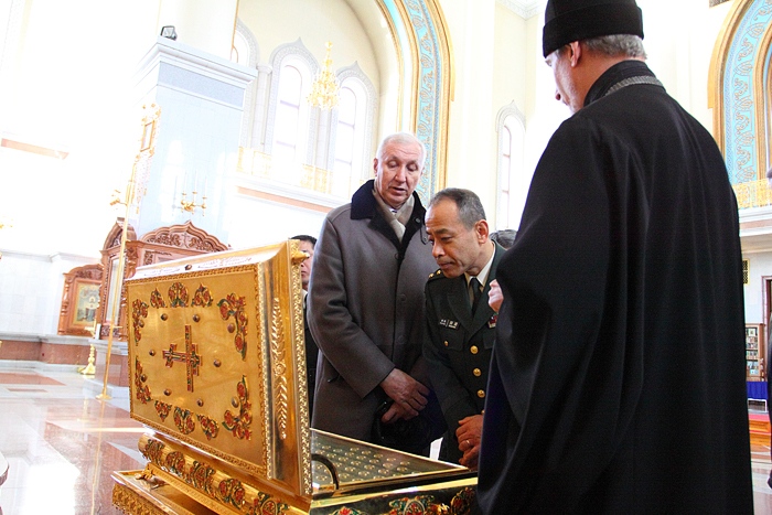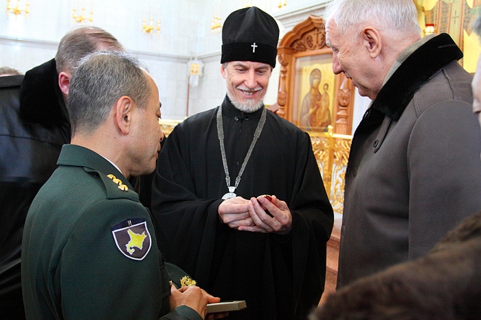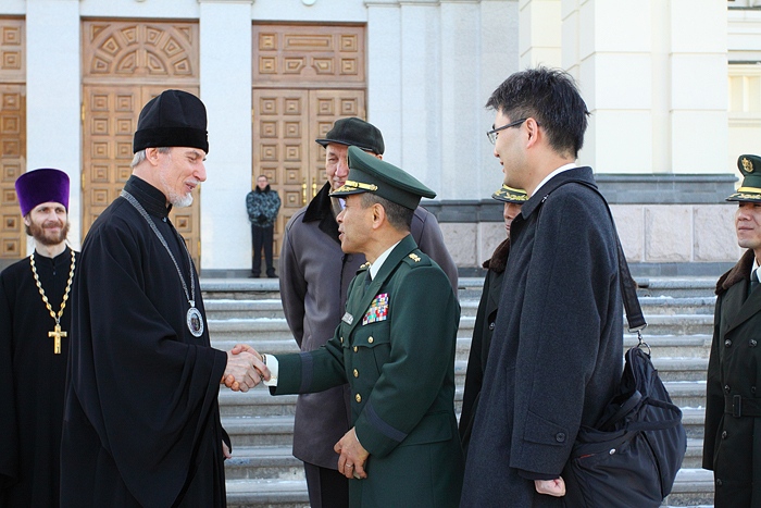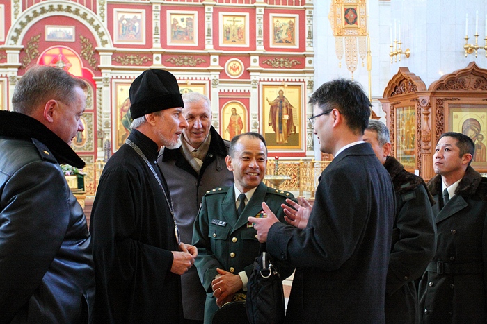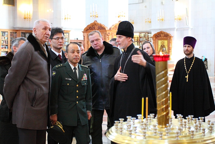 Военная делегация Северной армии Сухопутных сил самообороны Японии посетила Спасо-Преображенский кафедральный собор. 12 марта 2014 года