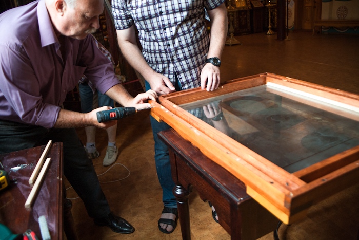 Новый киот у иконы Богородицы «Неупиваемая Чаша». Христорождественский собор г. Хабаровска. 13 июля 2016 года