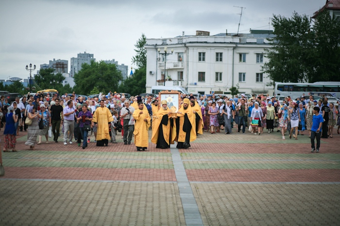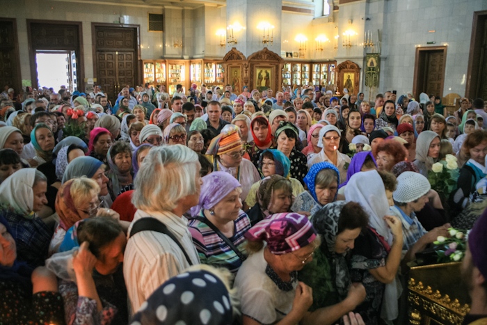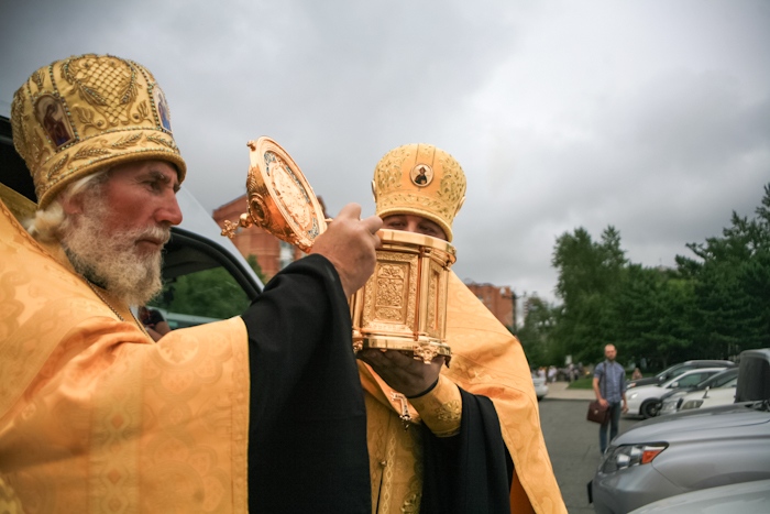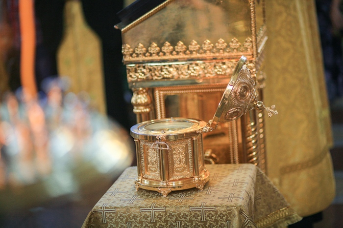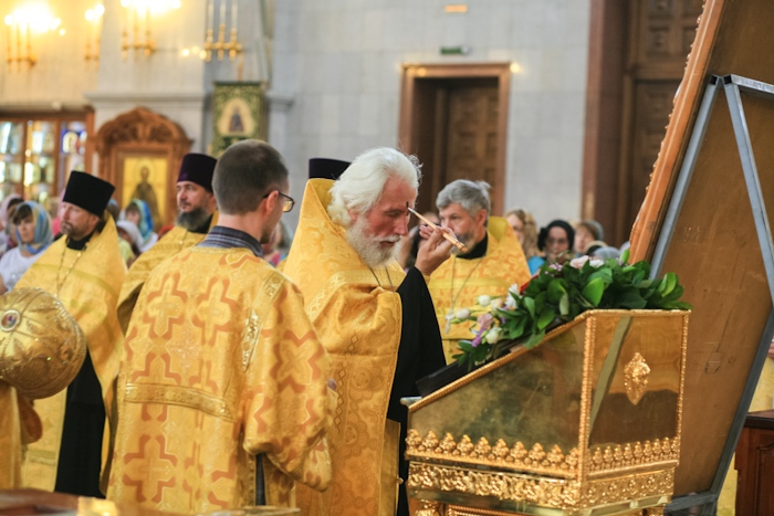 Ковчег с частицей мощей блаженной Матроны Московской. Спасо-Преображенский кафедральный собор. 13 июля 2016 года