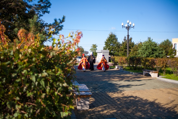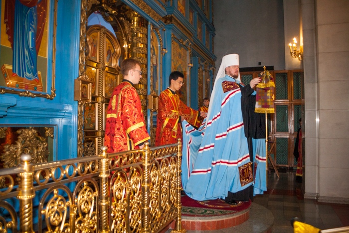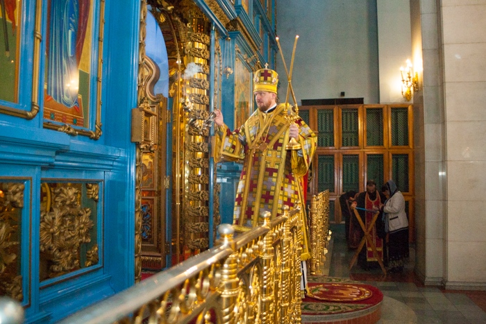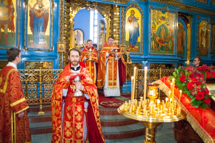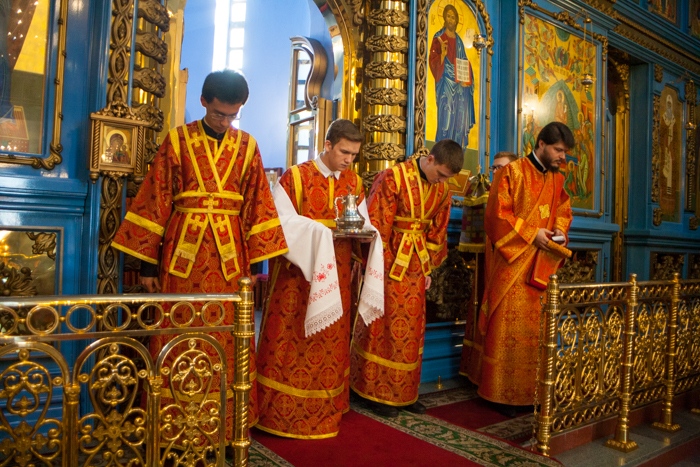 Божественная литургия в день Усекновения главы Пророка, Предтечи и Крестителя Господня Иоанна в Градо-Хабаровском храме Успения Божией Матери. 11 сентября 2016 года