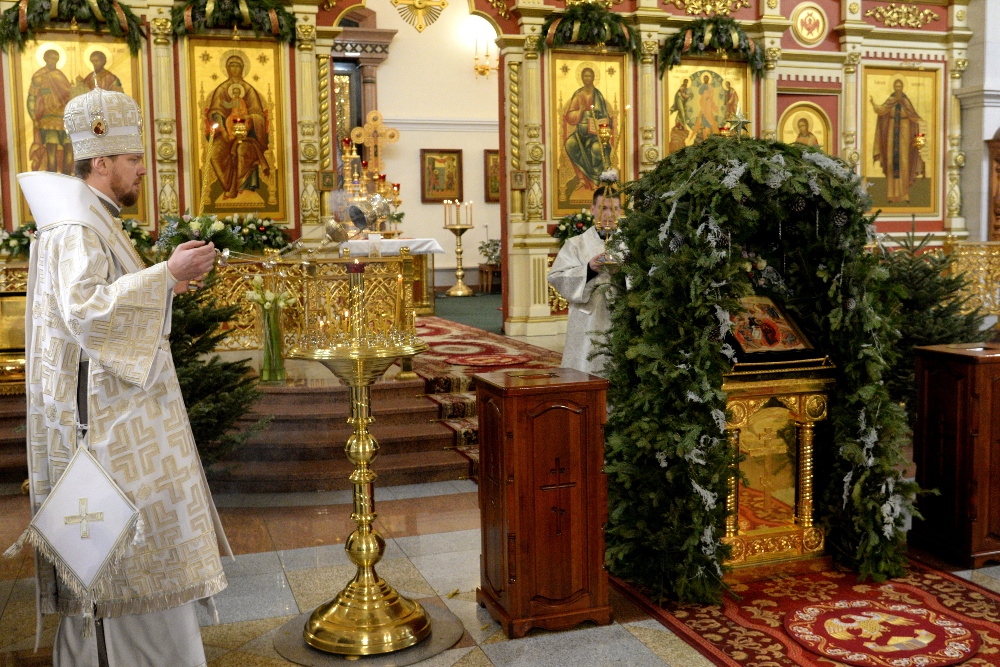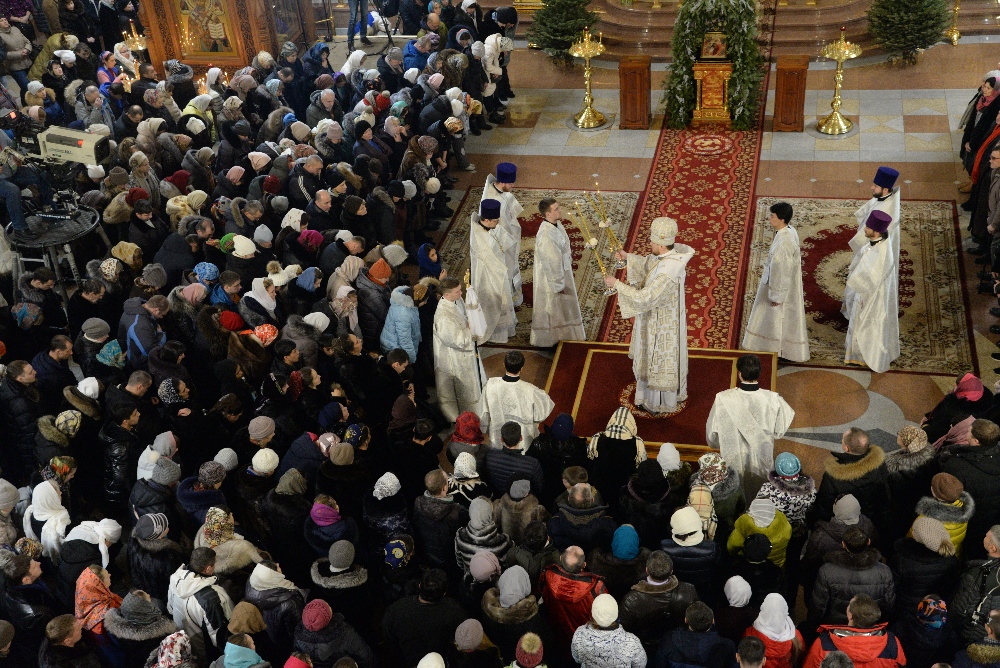 Божественная литургия в праздник Рождества Христова в Спасо-Преображенском кафедральном соборе 06-07 января 2018 г.