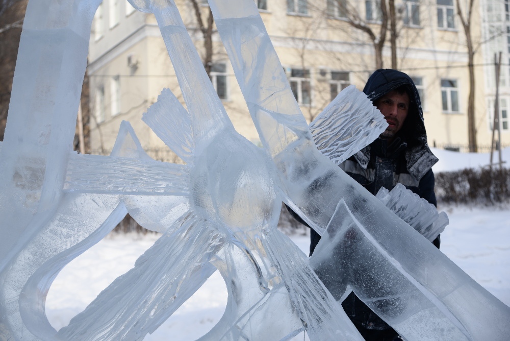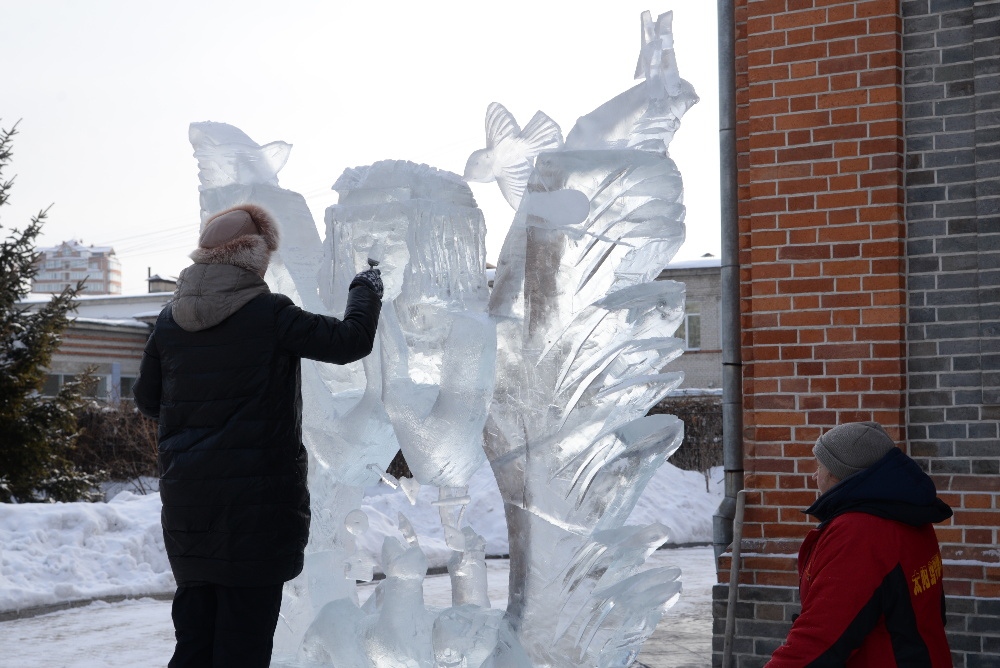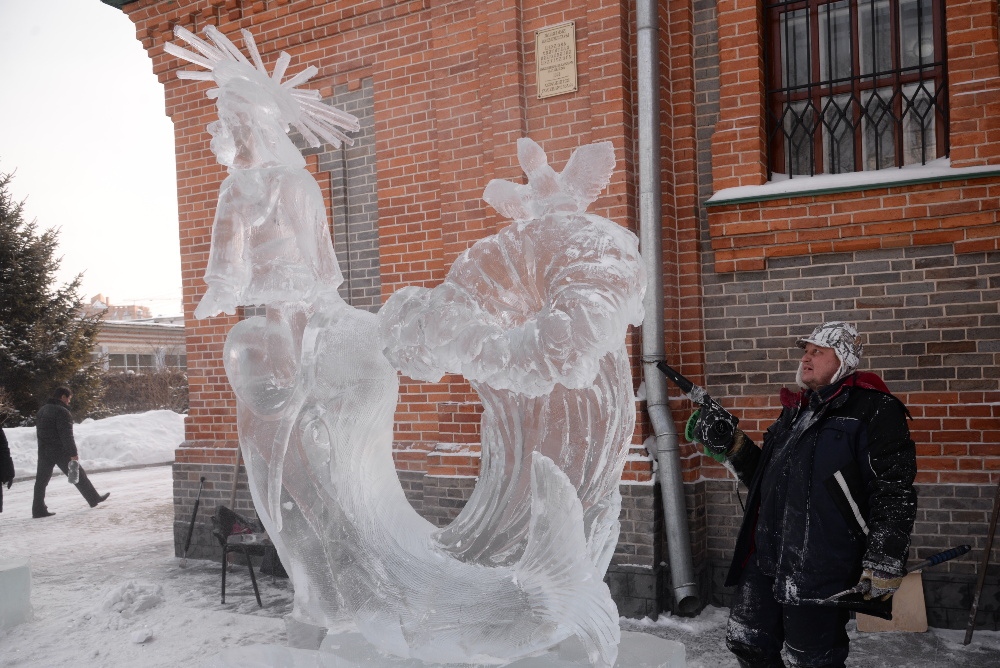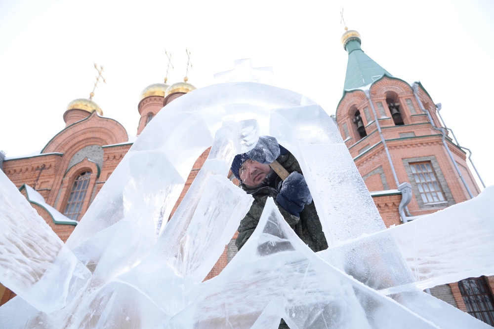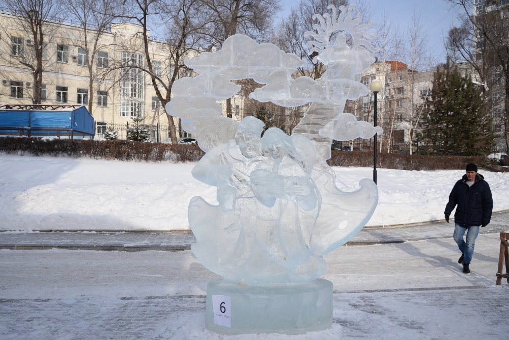 Награждение участников конкурса ледовых скульптур «Рождественские узоры Амура» на территории храма святителя Иннокентия Иркутского 19 января 2018 г.