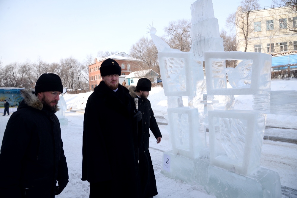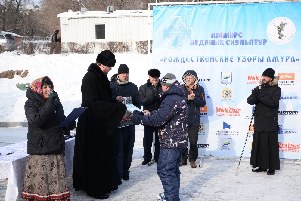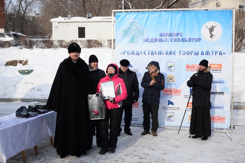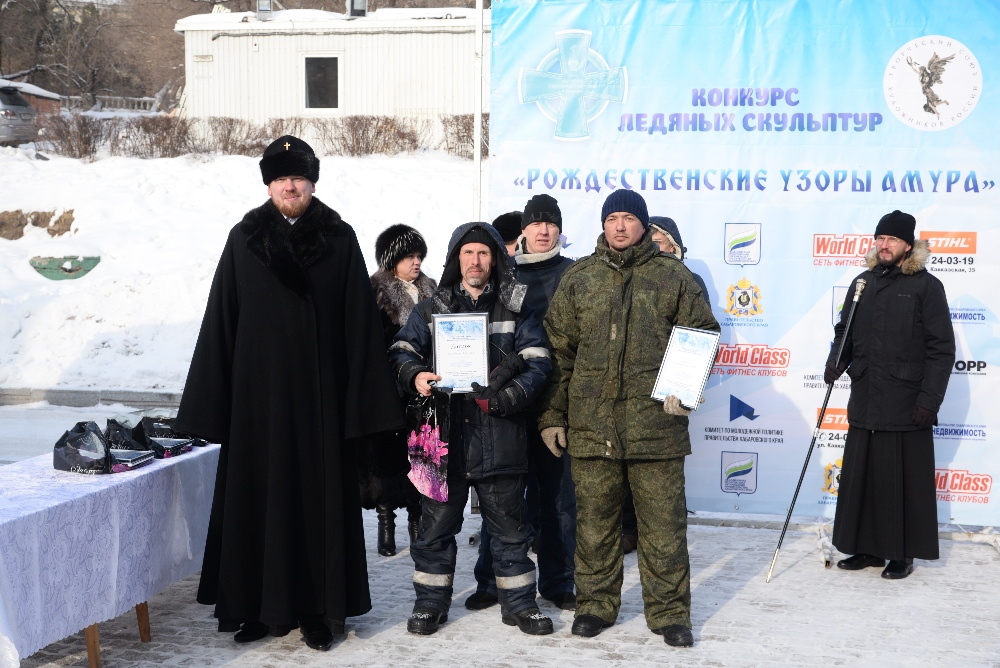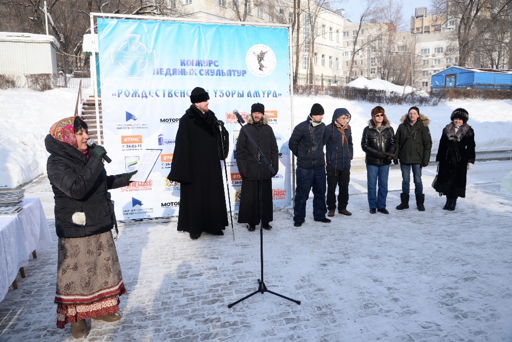 Хабаровск православный Фотогалерея События Митрополии Награждение участников конкурса ледовых скульптур «Рождественские узоры Амура» на территории храма святителя Иннокентия Иркутского 19 января 2018 г.