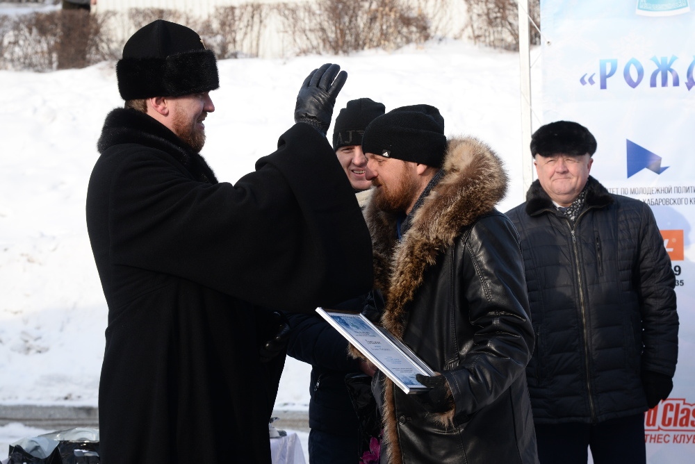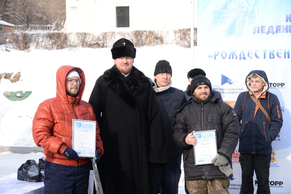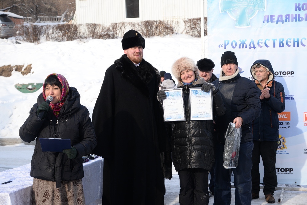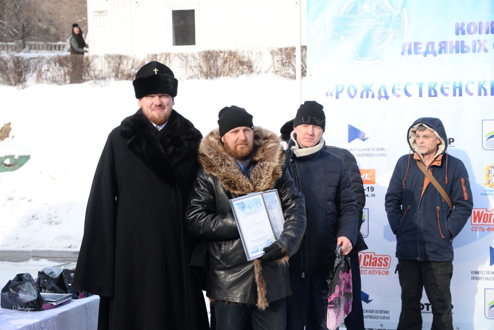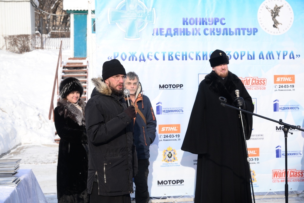 Хабаровск православный Фотогалерея События Митрополии Награждение участников конкурса ледовых скульптур «Рождественские узоры Амура» на территории храма святителя Иннокентия Иркутского 19 января 2018 г.