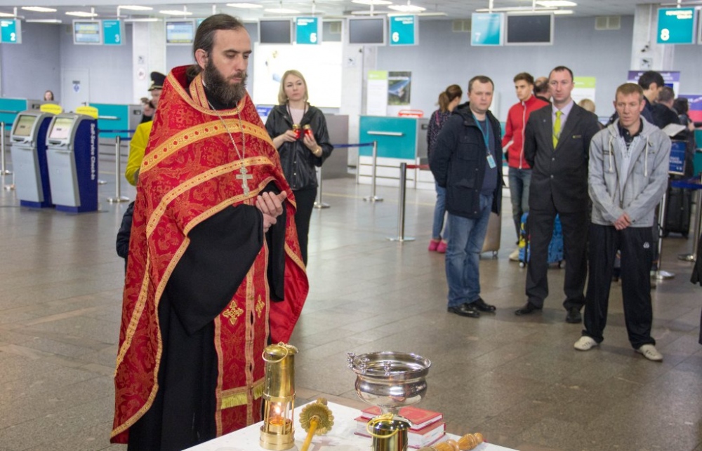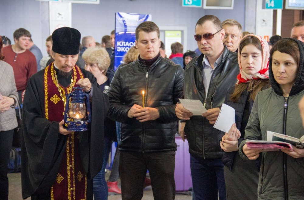 Встреча Благодатного огня в аэропорту и в Спасо-Преображенском соборе 30 апреля 2019 г.