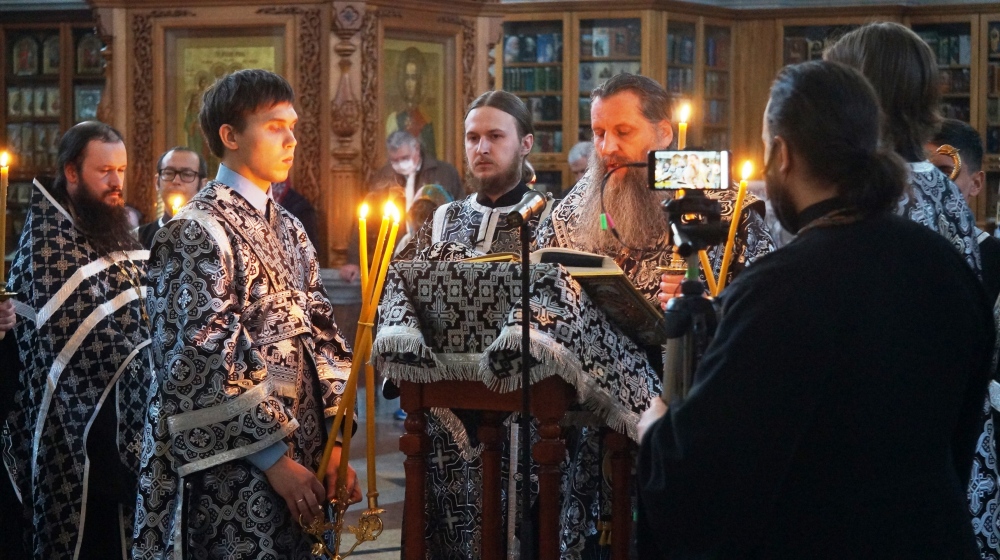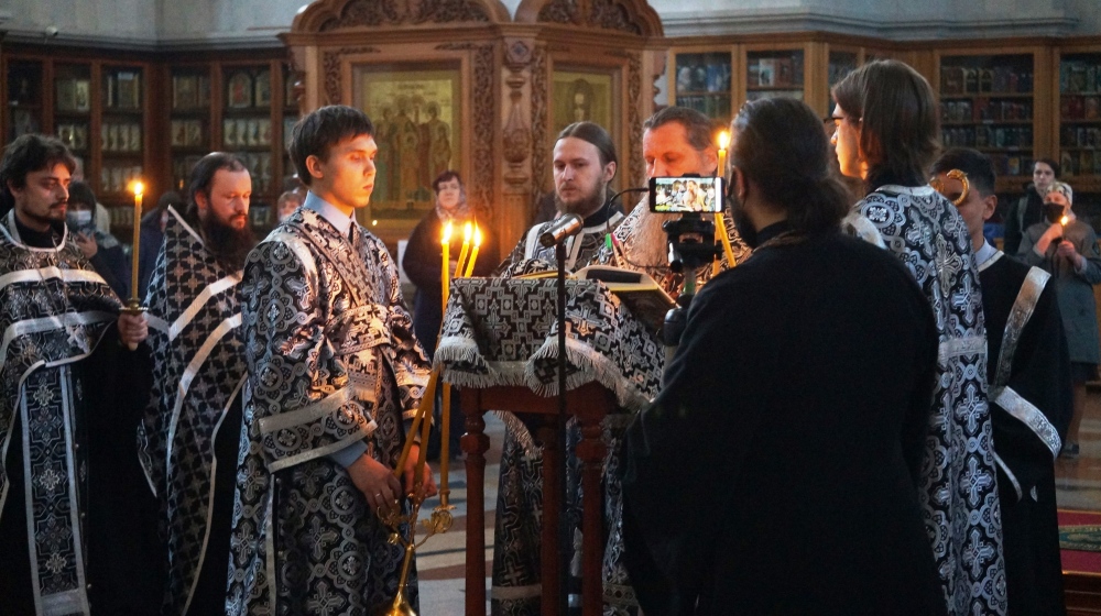 Утреня Великой Пятницы с чтением 12 Страстных Евангелий в Спасо-Преображенском кафедральном соборе 16 апреля 2020 г.