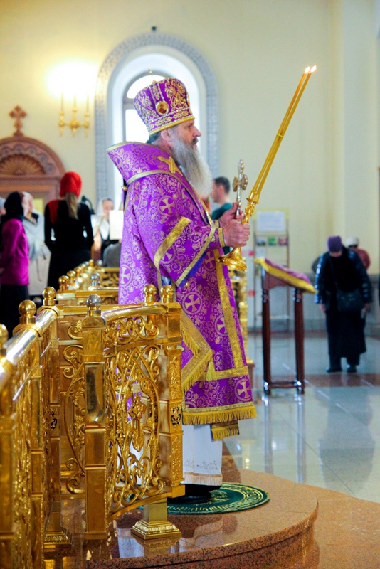 В Неделю Крестопоклонную митрополит Артемий совершил Божественную литургию в главном соборе Хабаровска 19 марта 2023 года