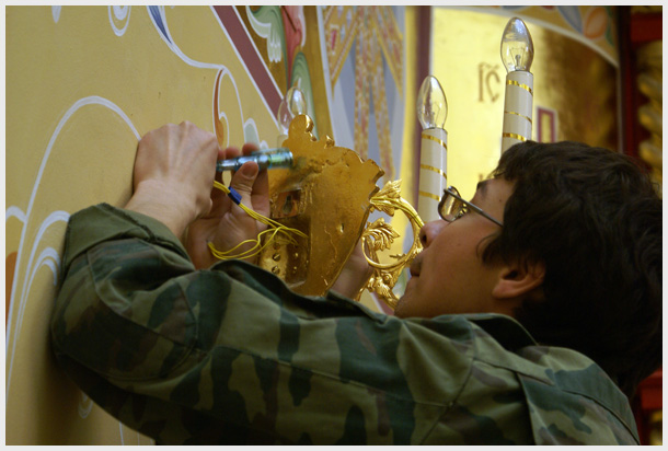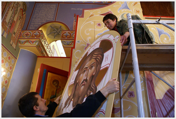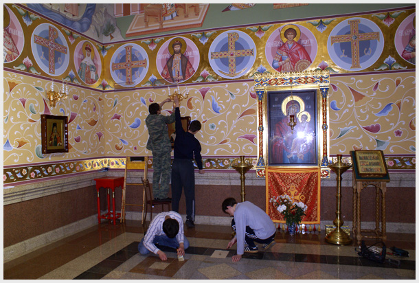 Подготовка домового храма семинарии к престольному празднику (10 апреля 2009 года)