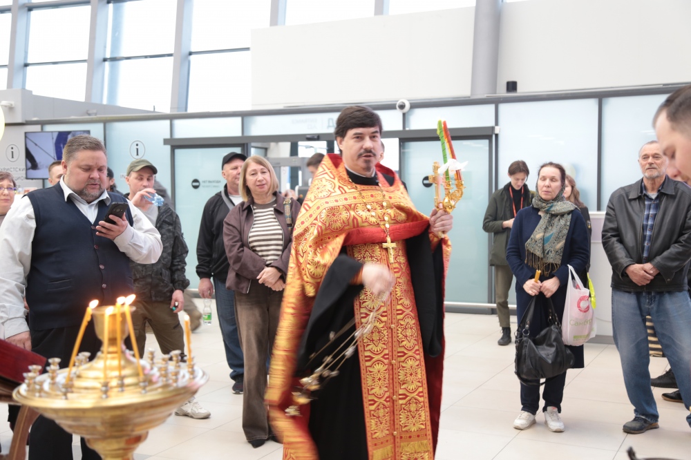 Встреча Благодатного огня в аэропорту 22 апреля 2025 г.