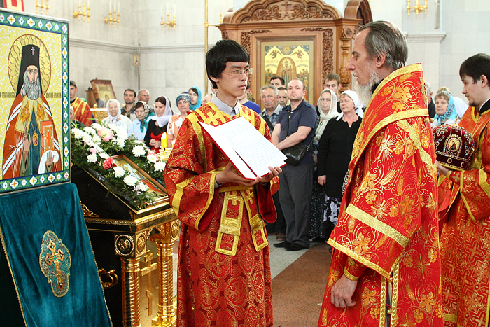 Освящение образа святителя Николая Японского в Спасо-Преображенском соборе архиепископом Хабаровским и Приамурским Игнатием. 29 мая 2011г.