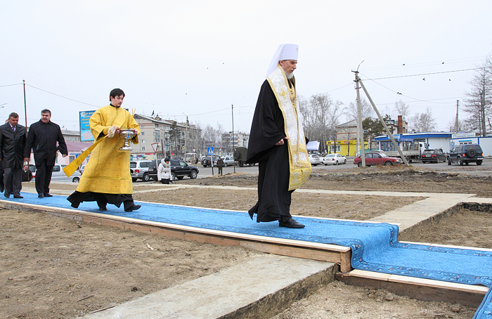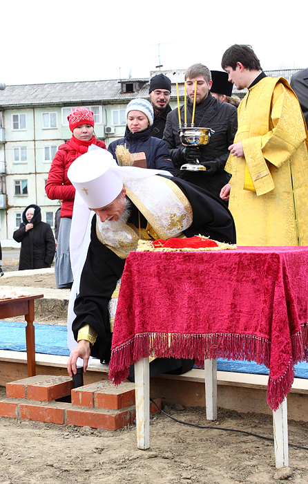 В поселкеПереяславка совершен чин закладки нового храма в честь иконы Божией Матери «Споручница грешных». 12 ноября 2011г.