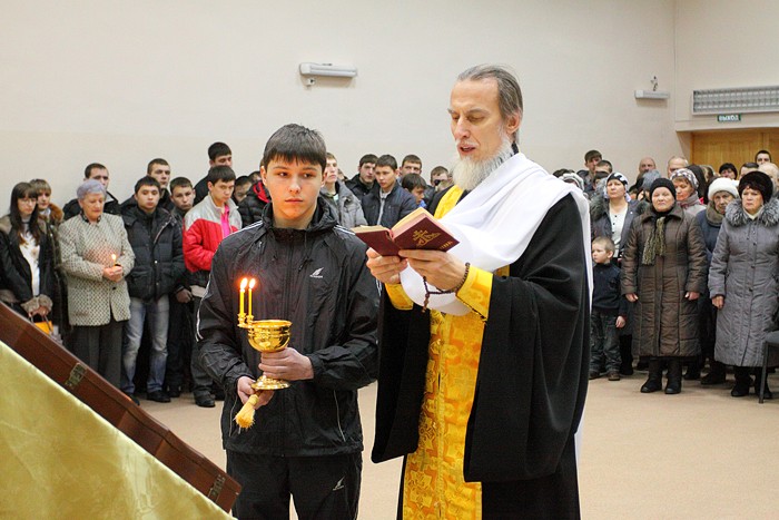 Освящение Албазинской иконы Богородицы в Судостроительном колледже г.Хабаровска. 9 марта 2012 г.